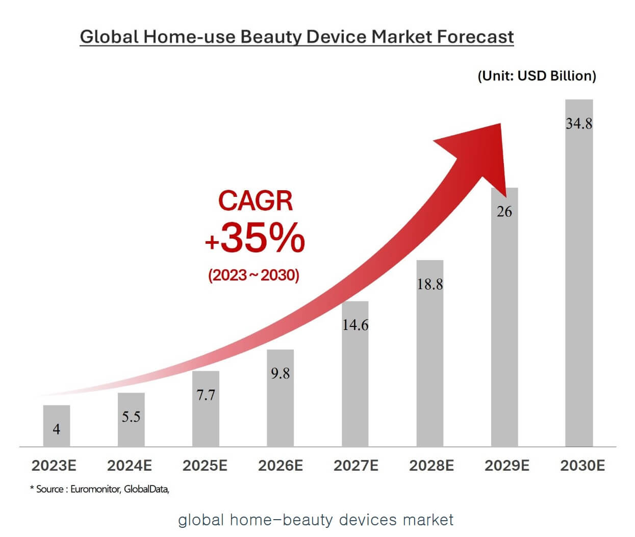 또한, Euromonitor와 Global Data에 의하면 Global Home Beauty Devices market은 2023년에 약 42억 달러로 추정되고