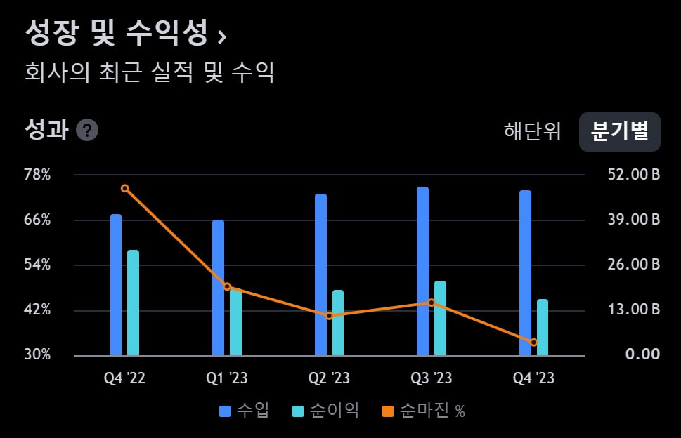 여기까지만 보면 긍정적이나, 분기수익성을 알아보겠습니다.