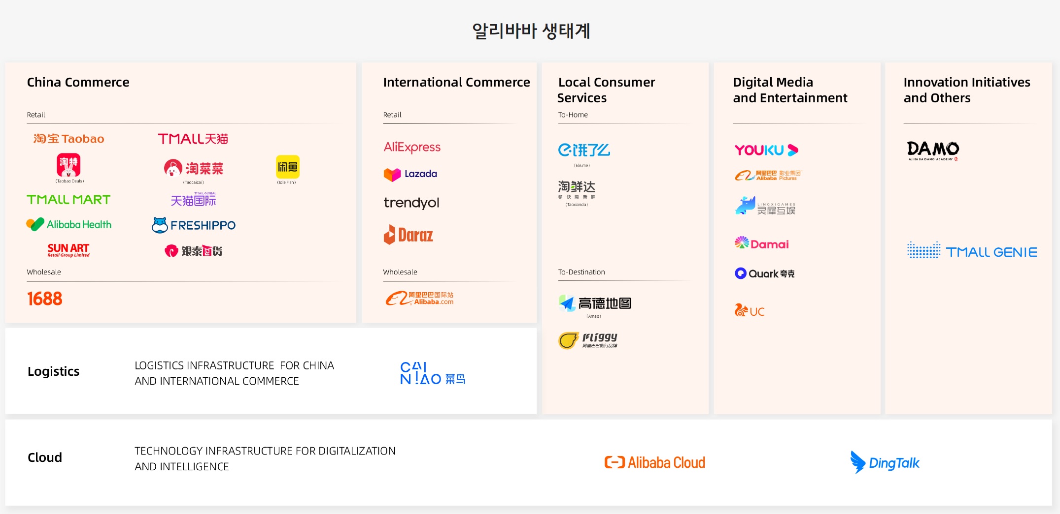 차이냐오 스마트 물류 네트워크 유한회사, 디지털 미디어 및 엔터테인먼트 그룹과 기타 다양한 사업을 영위하고 있는 형태로 상당히 다양한 분야로 활동이 뻗어나가고 있다는 걸 알 수 있습니다.