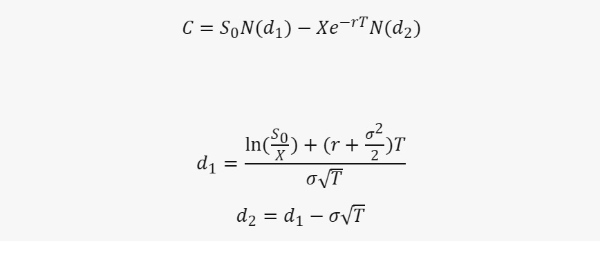 블랙-숄즈 모형의 콜 옵션 가격 공식은 다음과 같습니다.