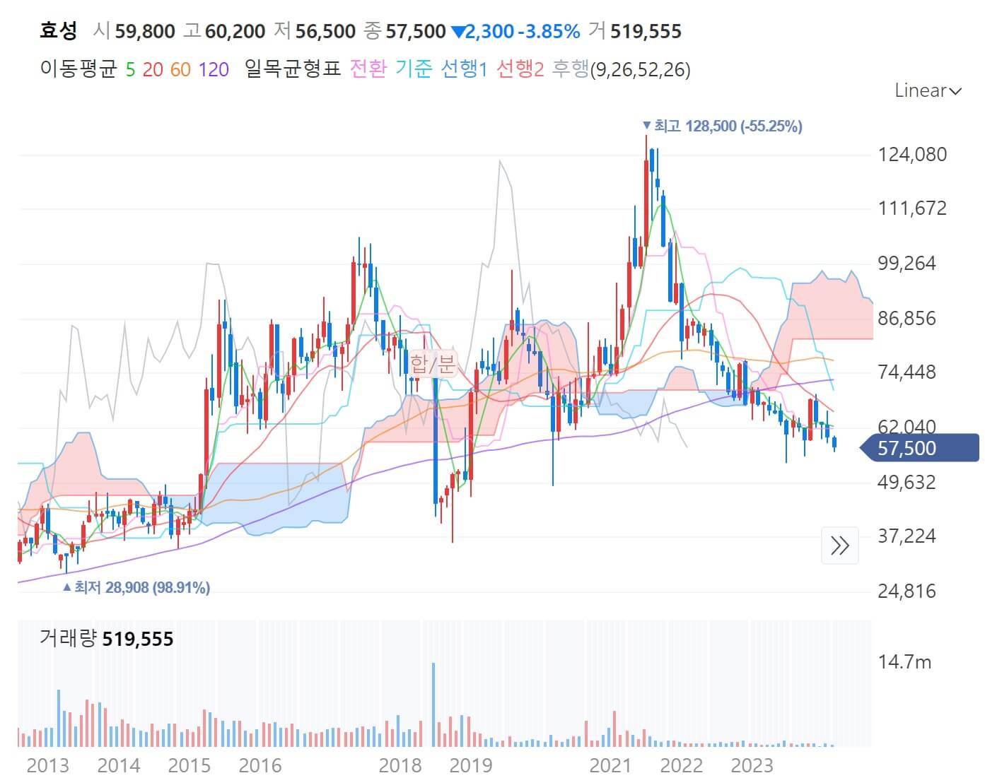 물론 시장의 대외적 요인에 영향을 받은 것도 있습니다만 인상적이긴 했습니다. 당시 분할로 효성가 지분은 37.77%에서