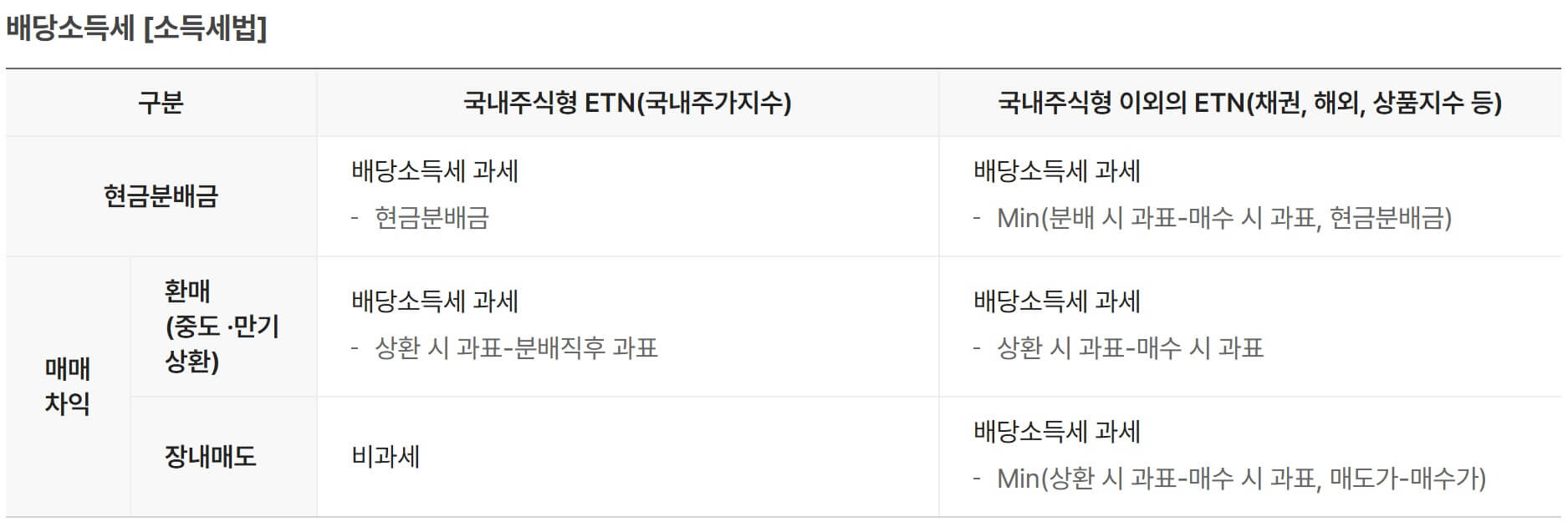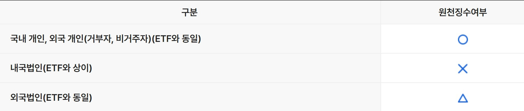 원천징수의 경우, 내국법인은 ETF와 달리 원천징수 대상에서 제외되는 특징을 나타냅니다.