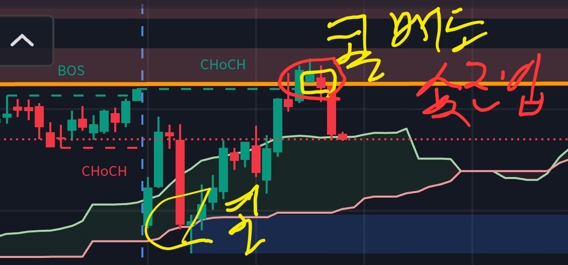 일목깨지 못하고 양전하는것 보고 콜진입. 480에서 SSS 스탑로스 스윕 발생 확인. 이때 콜 매도.