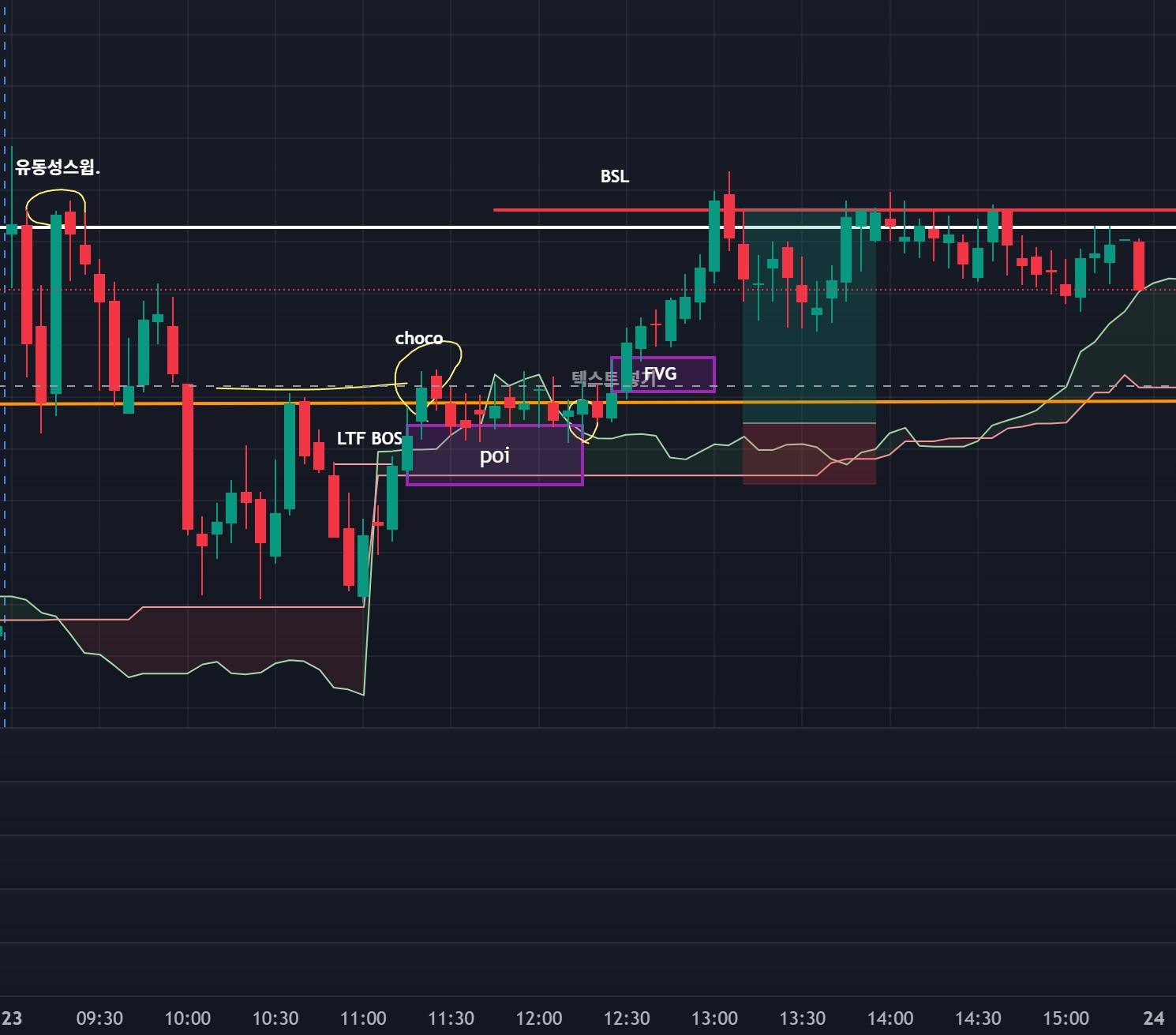POI가 받치고 FVG가 강한 지지구간을 만들어줬는데 여기선 매도포지션으로 진행한다해도