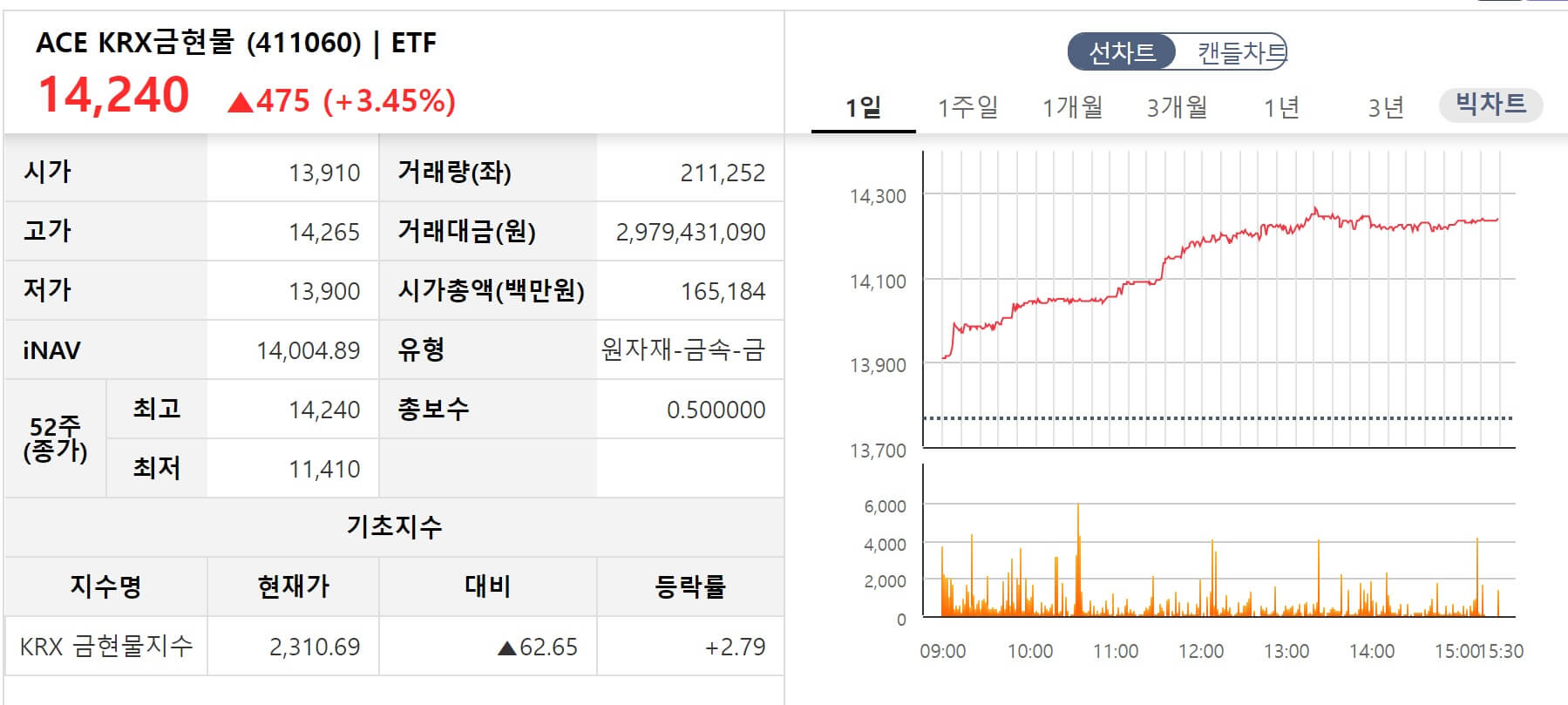 이번에 언급한 'ACE KRX 금현물 ETF'는 보관비용이 들지 않는 국내최초금현물 ETF 이며 퇴직 연금 계좌에서도 투자가능한 점이 특징입니다.